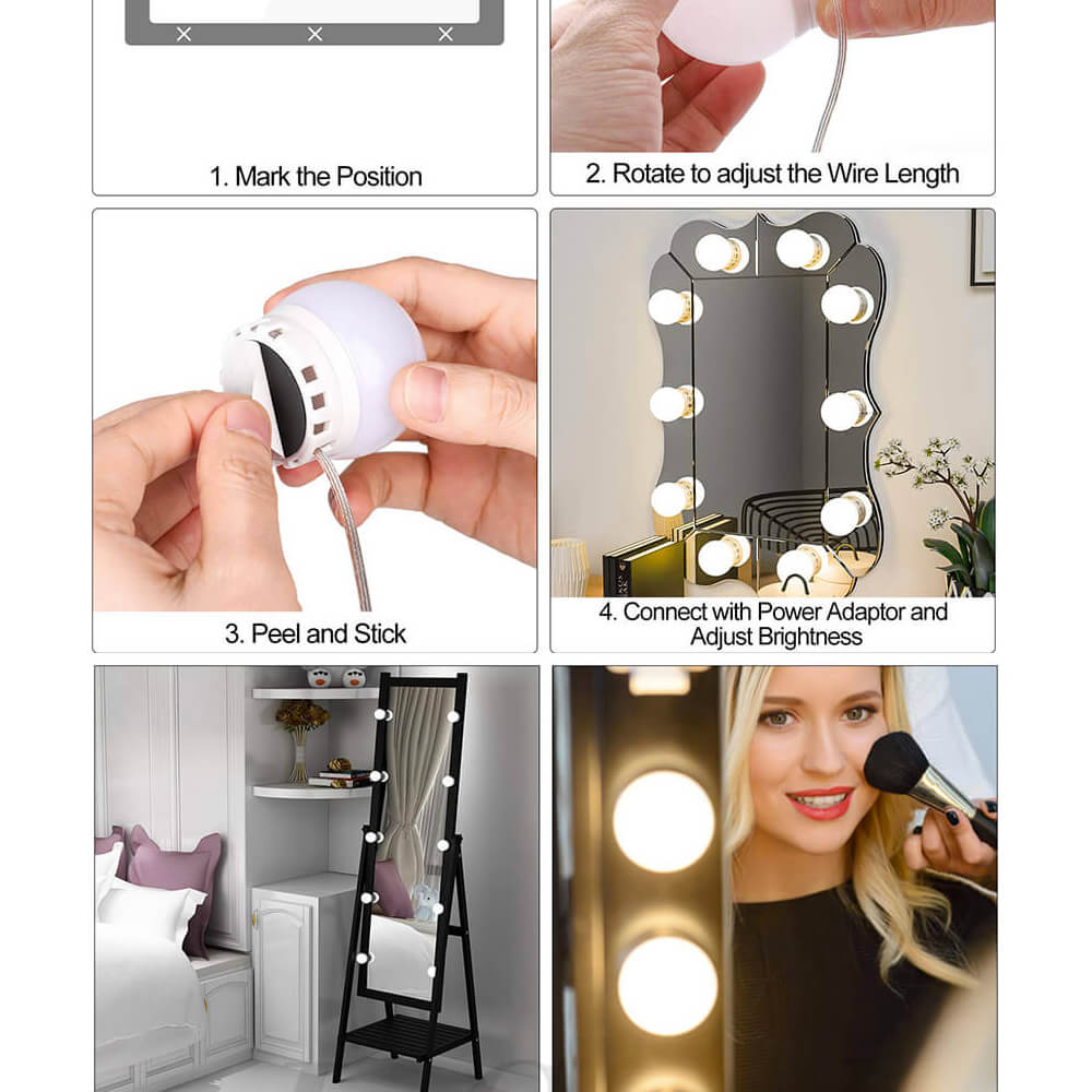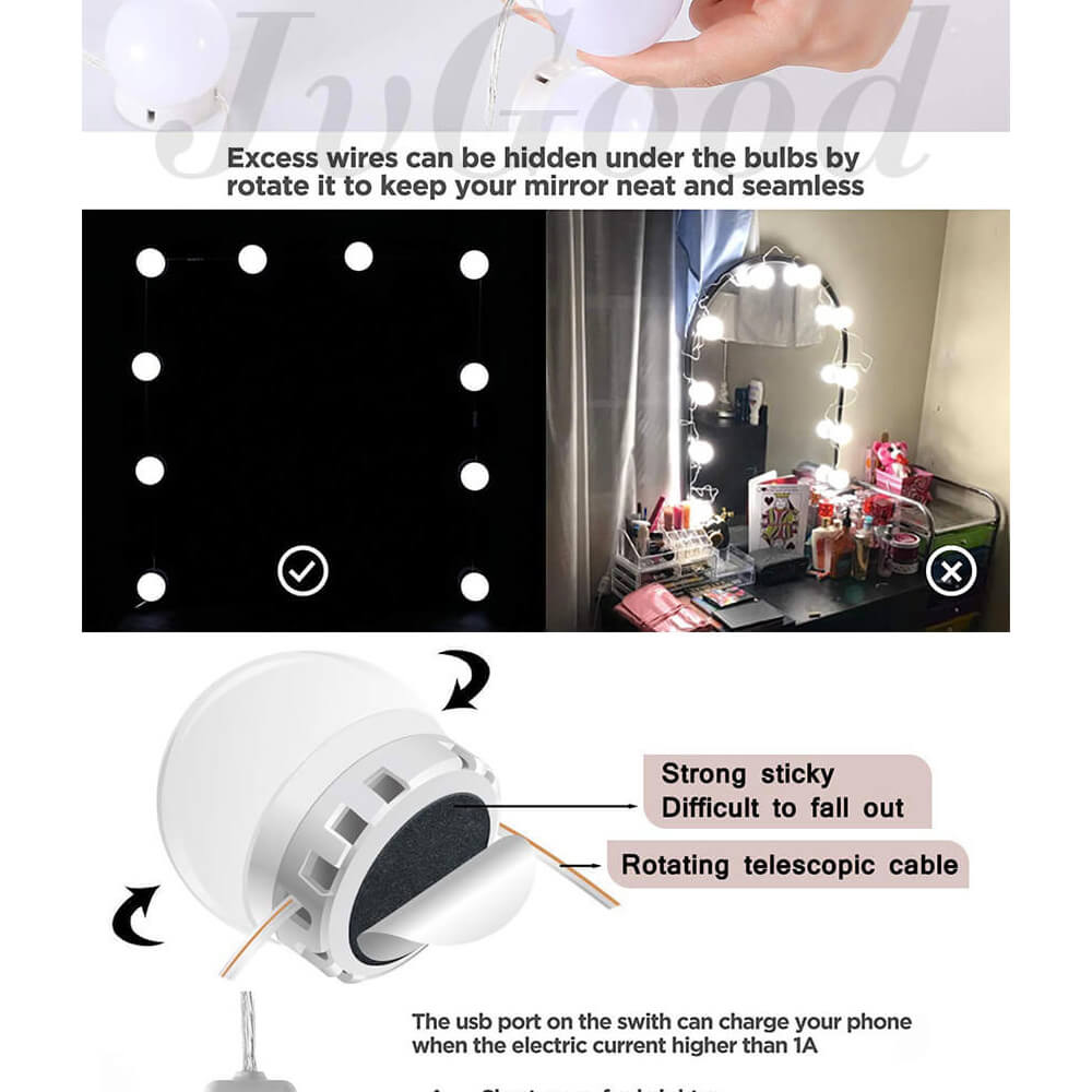 - The most important thing is that the excess wires are hidden in the bulbs which can not be seen outside to keep your mirror neat, beautiful and elegant.