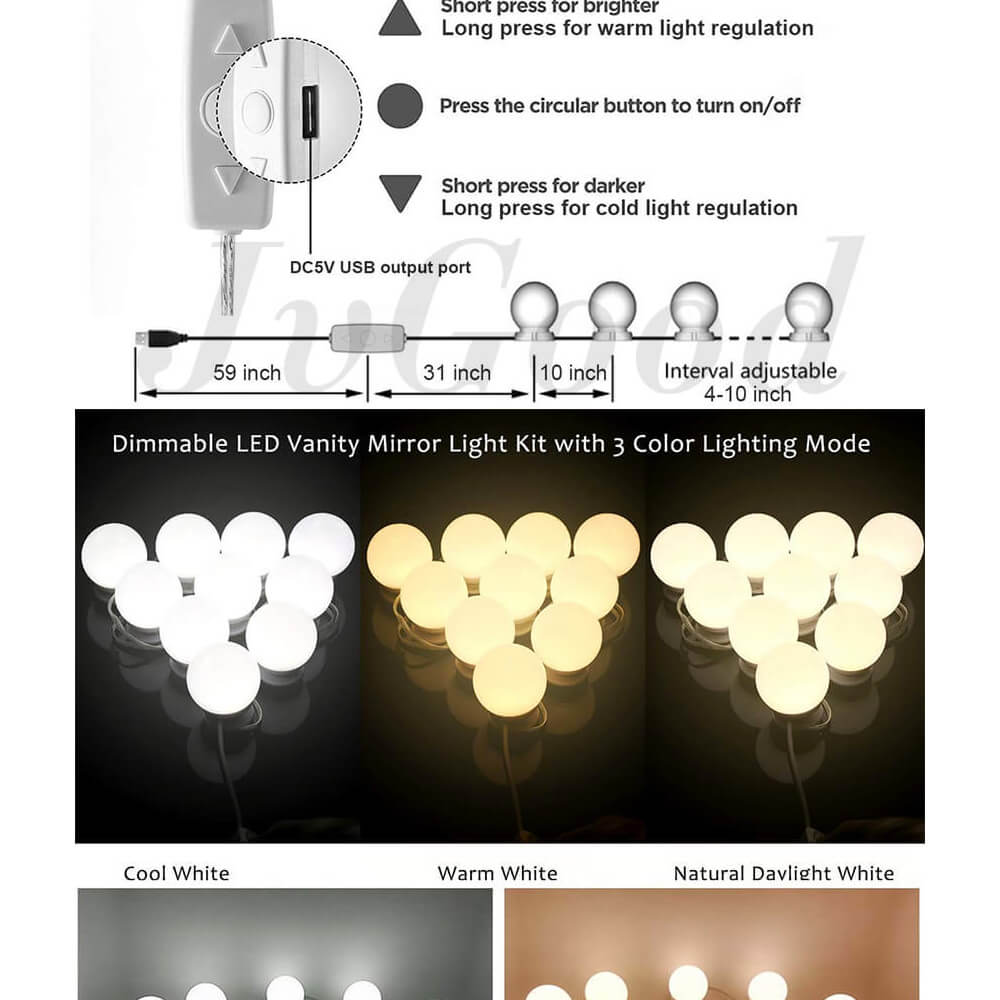 - Dimmable: Step less Dimmable LED Makeup Mirror Light
